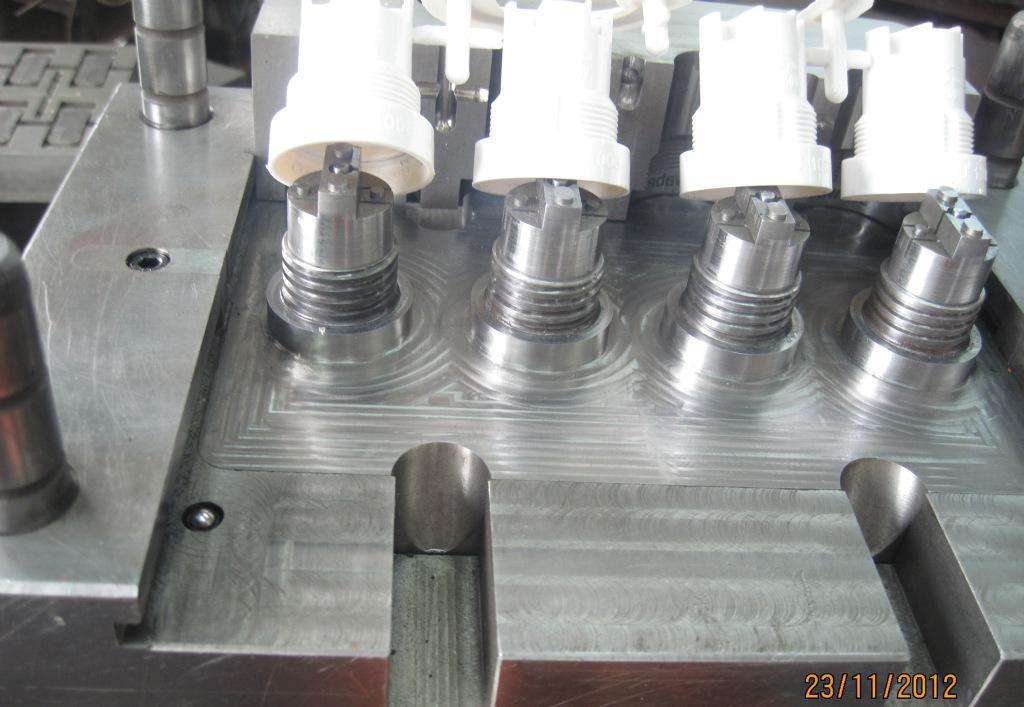 手動(dòng)的螺紋通常用在產(chǎn)品量比較少的模具上。這種模具每次下的訂單比較少。要求也不高,所以做模具的時(shí)候,把螺紋做在鑲件上,再做一個(gè)靠模,注塑的時(shí)候,先把鑲件放到模具里,等注塑完成后,把鑲件拿出來(lái),放到靠模上,把產(chǎn)品旋轉(zhuǎn)出來(lái)。這種方式是應(yīng)對(duì)小批量的產(chǎn)品。